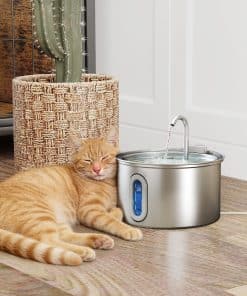 2.5L Stainless Steel Cat Water Fountain for Drinking with Ultra-Silent Pump, Water-Level Window, Filters